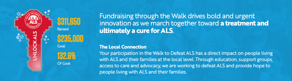 地元の幾つかの病院や、企業、ビジネス、マスコミなどのスポンサーシップ、そして個々人の寄付金を合わせるとイベント前の時点で、約360,000ドル (約5490万円)に達したというアナウンスもありましたが、ウエブには311,650と記載されていました。このイベントは、州内の異なる街で催される予定となっています。他のALS イベントもミルウォーキー内で今月内に予定されているようで、10月はALSイベントの多い月となっています。